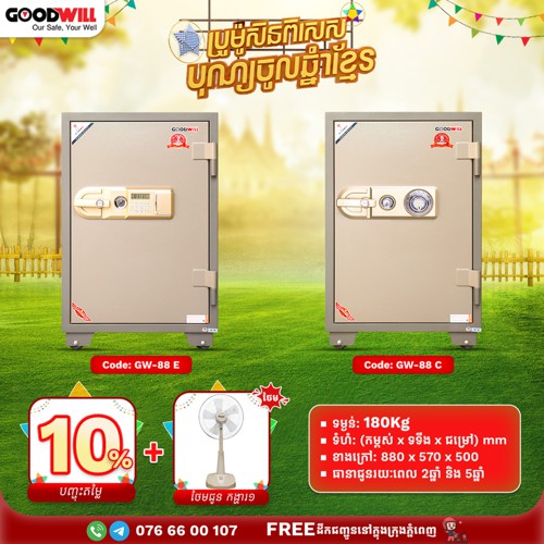 ទូដែក សុវត្ថិភាព -លេខកូដ : GW-37 C - ទម្ងន់ 45Kg - ទំហំ : (H x W x D) mm - ខាងក្រៅ៖ 370 x 485 x 410 - ខាងក្នុង : 252 x 350 x 251 - ផលិតផលប្រទេសកូរ៉េ ការការពារភ្លើងបាន 1037 ត្រាំ 2 ម៉ោង។ -ធានា រយៈពេល ៥ ឆ្នាំ។ ទូរស័ព្ទ៖ 076 66 00 107