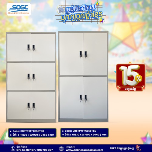 ទំហំ: (H x W x D) mm ខាងក្រៅ : 880 x 570 x 500 ខាងក្នុង: 670 x 430 x 235