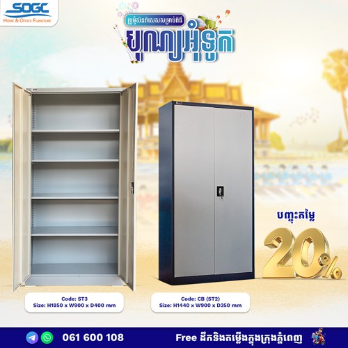ទំហំ: (H x W x D) mm ខាងក្រៅ : 880 x 570 x 500 ខាងក្នុង: 670 x 430 x 325