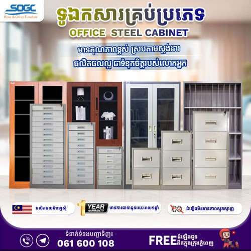 ទំហំ: (H x W x D) mm ខាងក្រៅ : 880 x 570 x 500 ខាងក្នុង : 670 x 430 x 325