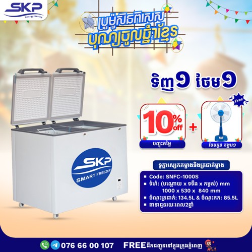 ទូក្លាស្សេឆ្លាតវៃ (ត្រជាក់ម្ខាង និង កកម្ខាង) - SMARTFREEZER ម៉ូដែល ៖ SNFC-1០00S