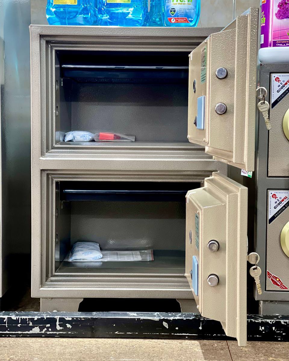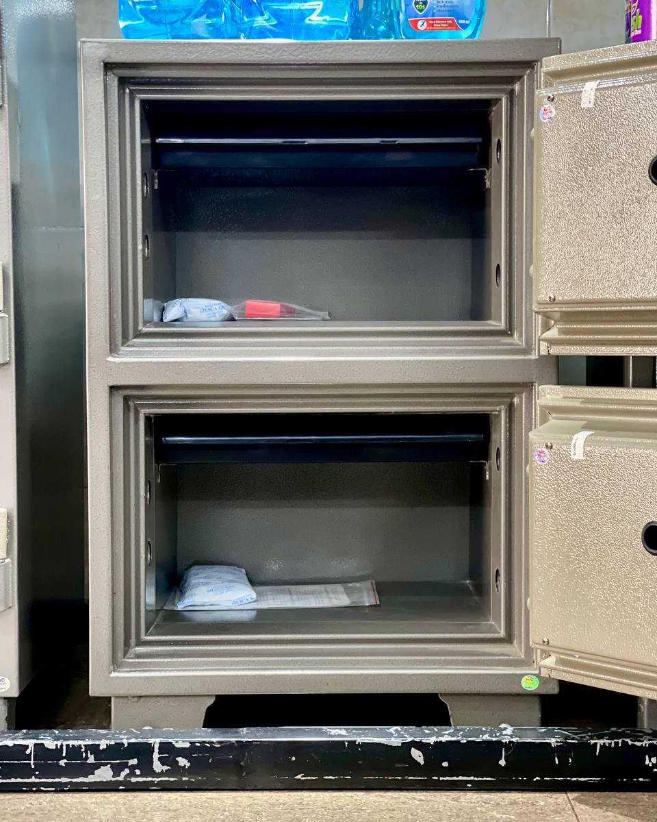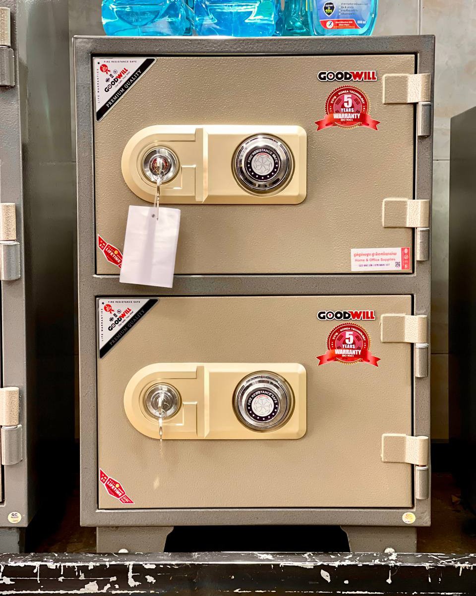 New generate of safety box, High abilities to protect your wealth, documents from fire. Can be withstand 1037 degrees Celsius for 2 hours with insulation from insulation and cement in accordance with Korean standard.Features of safety box can protects against fraudulent password, moving, conflict of something or devastation have an alarm system is the sign. Door lock and ear door is stable, strong resilient protected by high quality paint protects rust.
