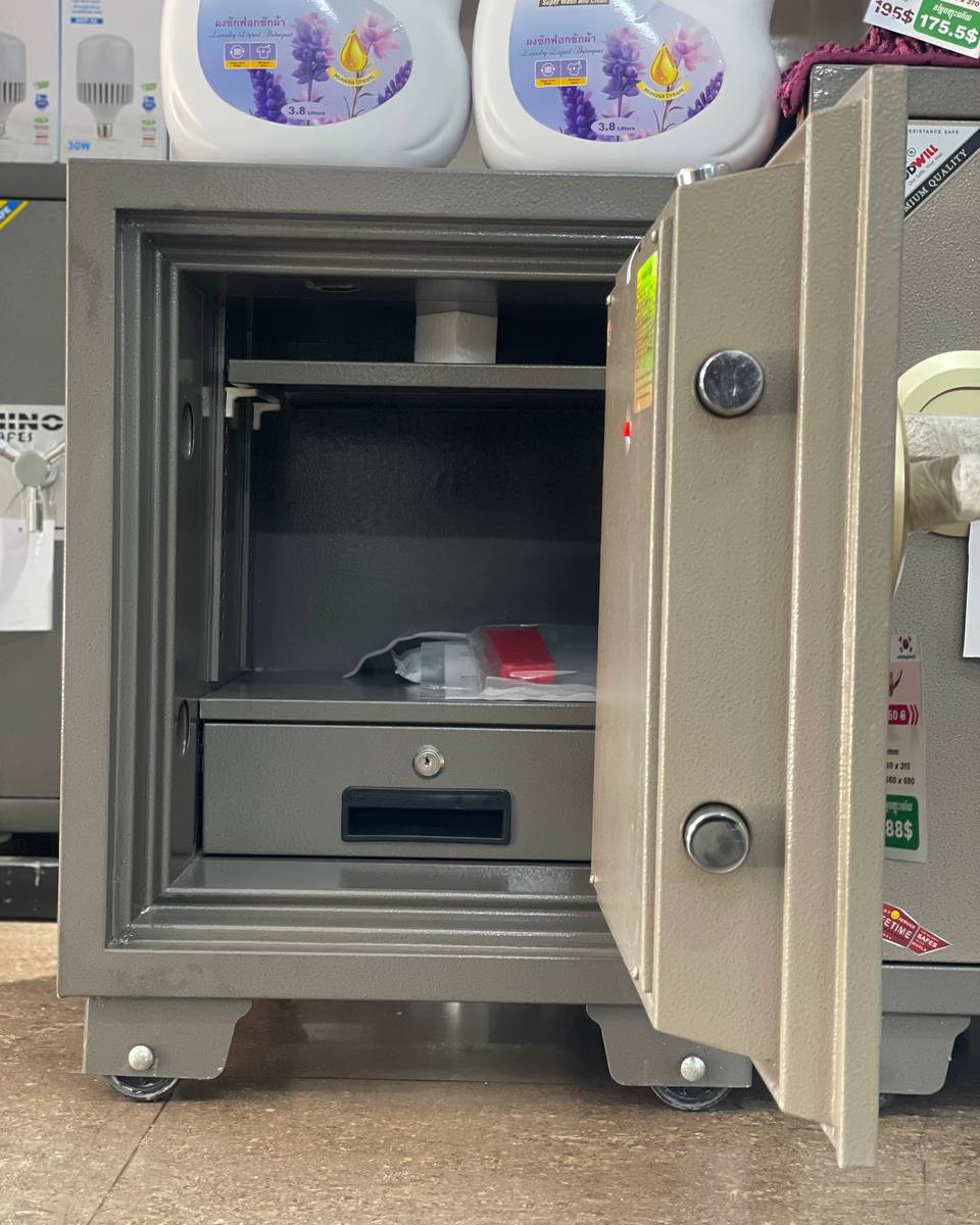 New generate of safety box, High abilities to protect your wealth, documents from fire. Can be withstand 1037 degrees Celsius for 2 hours with insulation from insulation and cement in accordance with Korean standard. Features of safety box can protects against fraudulent password, moving, conflict of something or devastation have an alarm system is the sign. Door lock and ear door is stable, strong resilient protected by high quality paint protects rust.