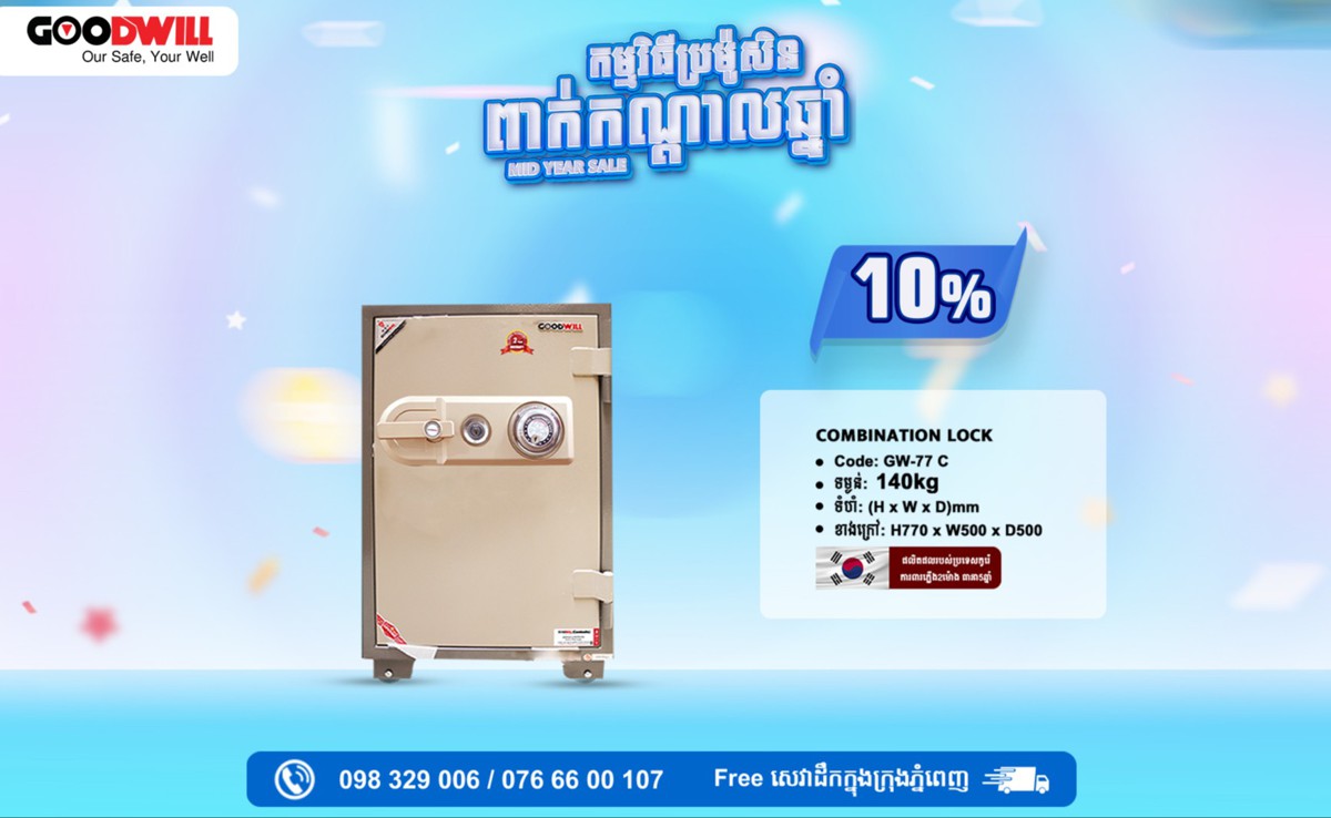 ទូដែកសុវត្ថិភាពប្រើប្រព័ន្ធសោរ Digital Lock (អាចកំណត់លេខសម្ងាត់បាន 8 ខ្ទង់)