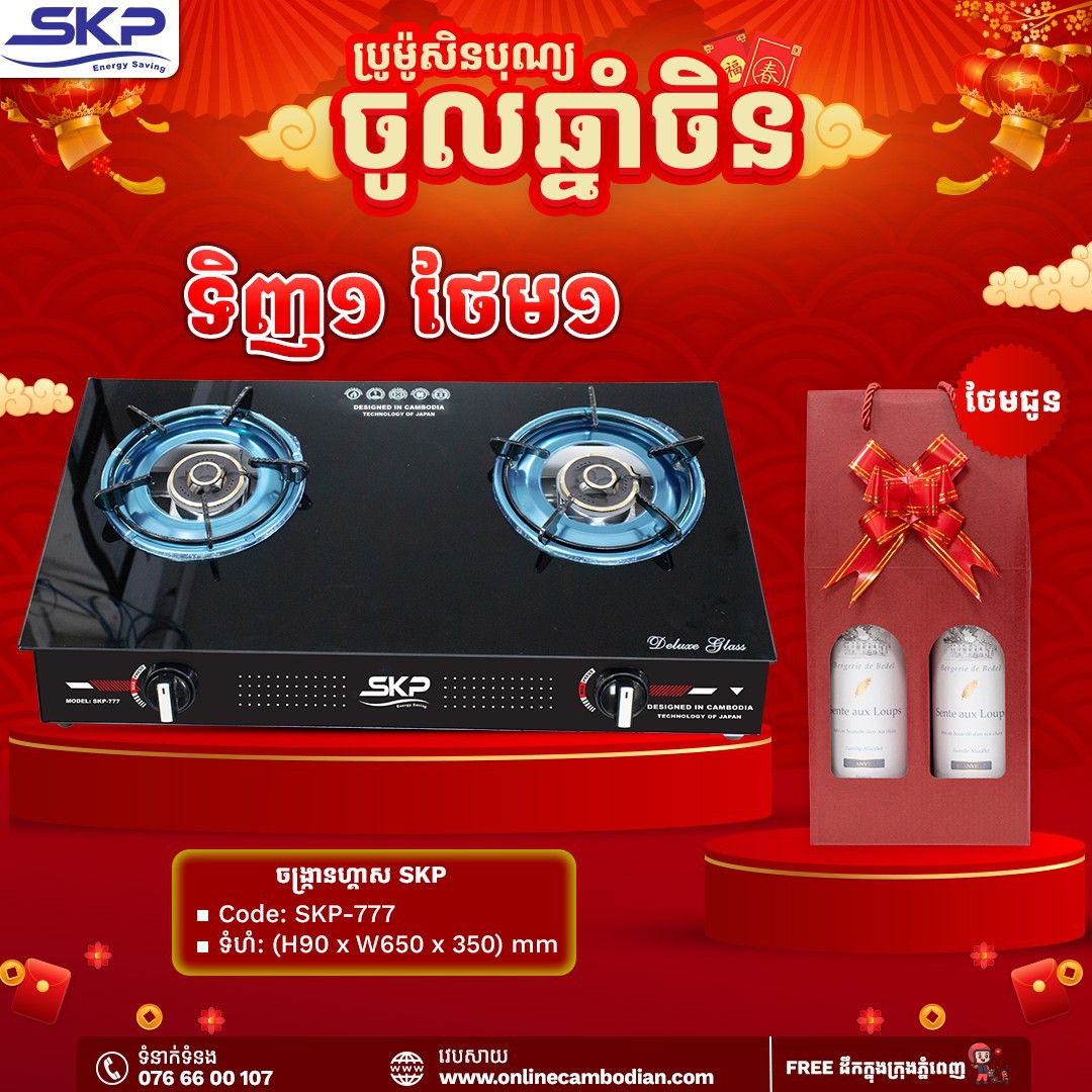 អតិថិជនបញ្ជាទិញចង្ក្រានម៉ាក SKP មានការថែមកាដូស្រាក្រហម2ដបភ្លាមៗ