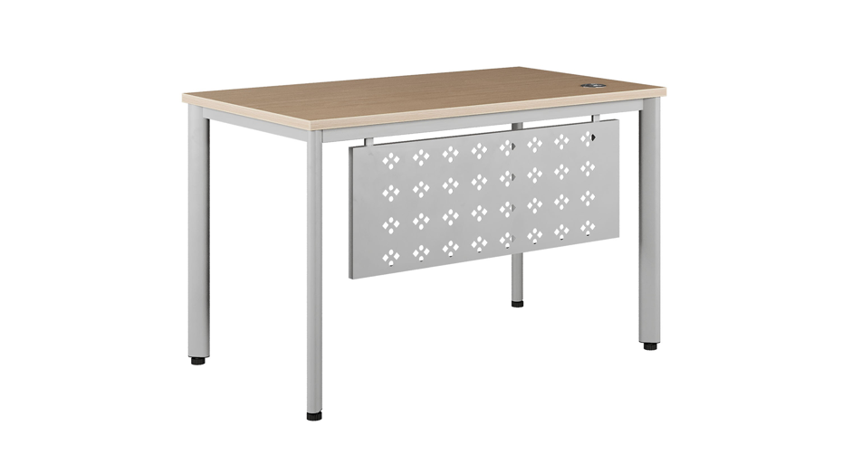 Work Table Oval tube Leg-Dim : W1200 xD600 xH750 mm-Table top 25mmthk particle board (Okal) melamine color wood-Steel powder coating leg with modesty panel color gray