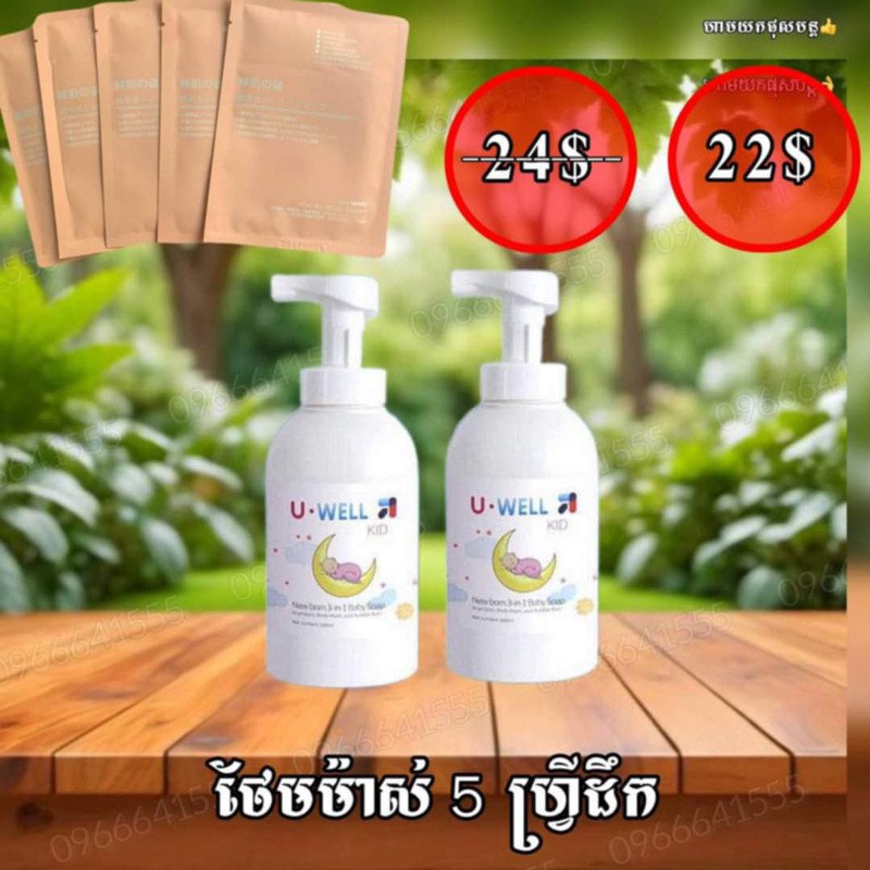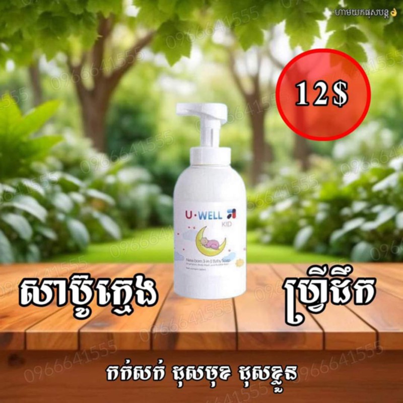 U.WELL KID តម្លៃត្រឹមតែ $12 ចំណុះ 500ml ជាប្រភេទហ្វូមពពុះប្រើបានយូរជាងជែលធម្មតា ជាពិសេសមានមុខងារ 3-in-1 អាចកក់សក់ សម្អាតមុខ និងដុះខ្លួនបានទាំងអស់រួមជាមួយនឹងអត្ថប្រយោជន៍ជាច្រើនដូចជា ៖