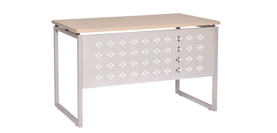 Dim : W1200 xD600 xH750 mmTable top 25mmthk particle board (Okal) melamine color woodSteel powder coating leg with modesty panel color white